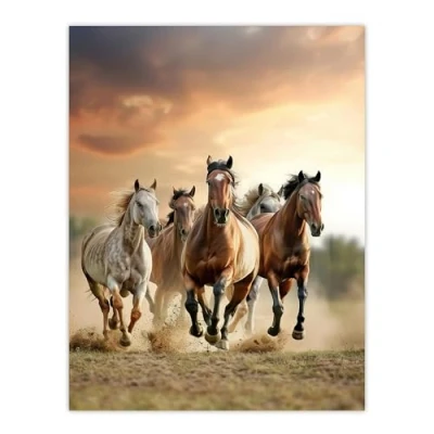 Artery8 Wild Horses Galloping Open Field Sunset Clouds Living Room Large Wall Art Poster Print Thick Paper 18X24 Inch