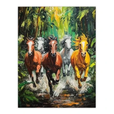 Artery8 Wild Horses Galloping Through Forest Oil Painting Living Room Large Wall Art Poster Print Thick Paper 18X24 Inch
