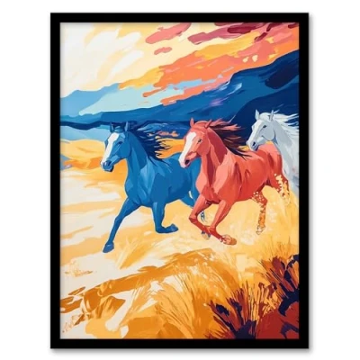 Artery8 Wild Horses Running Desert Landscape Oil Painting Living Room Artwork Framed Wall Art Print A4