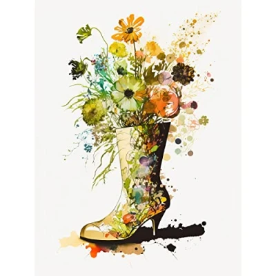 Artery8 Wildflower Bouquet in a High Heel Floral Boot Extra Large XL Wall Art Poster Print