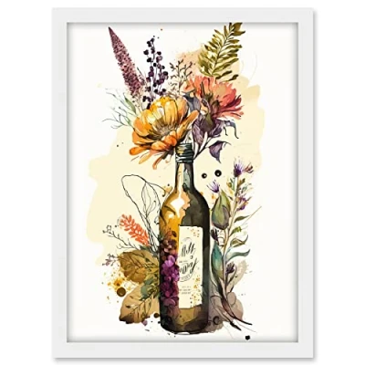Artery8 Wildflower Bouquet in Upcycled Glass Wine Bottle Artwork Framed A3 Wall Art Print