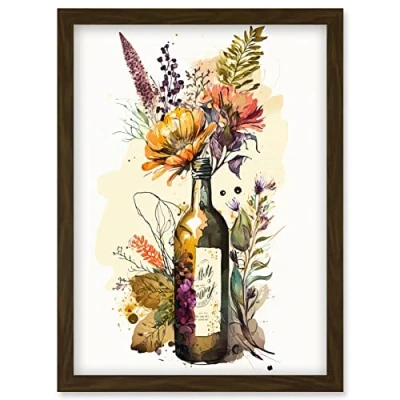 Artery8 Wildflower Bouquet in Upcycled Glass Wine Bottle Artwork Framed Wall Art Print A4
