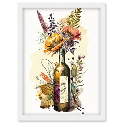 Artery8 Wildflower Bouquet in Upcycled Glass Wine Bottle Artwork Framed Wall Art Print A4