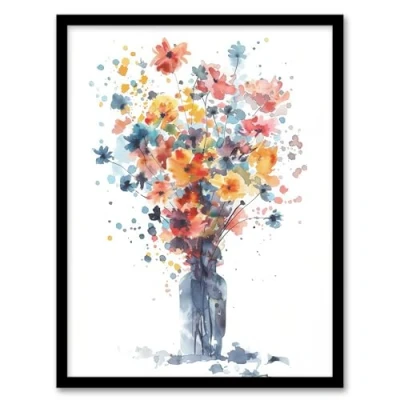 Artery8 Wildflower Bouquet in Vase Abstract Watercolour For Living Room Artwork Framed Wall Art Print A4
