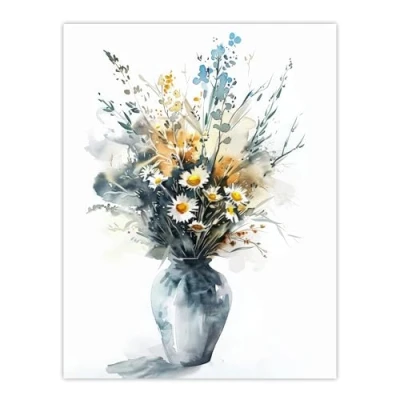 Artery8 Wildflower Bouquet in Vase Watercolour Painting For Living Room Extra Large XL Wall Art Poster Print