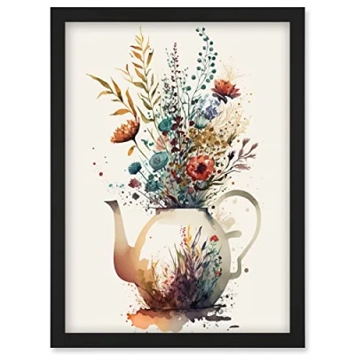Artery8 Wildflower Bouquet Teapot Vase with Floral Design Artwork Framed Wall Art Print A4
