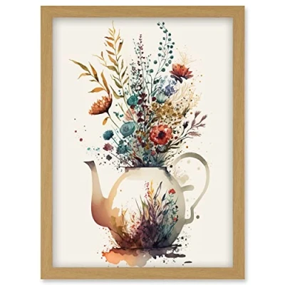 Artery8 Wildflower Bouquet Teapot Vase with Floral Design Artwork Framed Wall Art Print A4