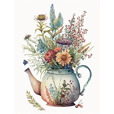 Artery8 Wildflower Floral Bouquet in China Pattern Teapot Extra Large XL Wall Art Poster Print