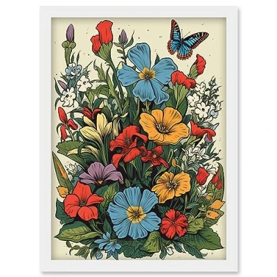 Artery8 Wildflower Meadow Colourful Tattoo Ink Body Art Rockabilly Americana 50s Artwork Framed Wall Print A4