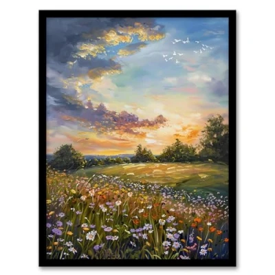 Artery8 Wildflower Meadow Landscape Oil Painting Spring Living Room Artwork Framed Wall Art Print A4