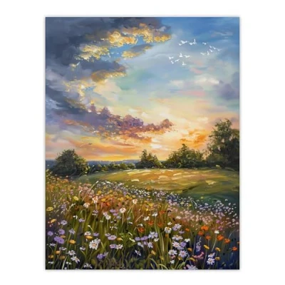 Artery8 Wildflower Meadow Landscape Oil Painting Spring Living Room Extra Large XL Wall Art Poster Print