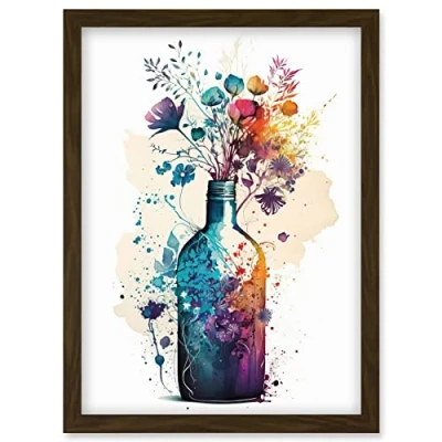 Artery8 Wildflower Spring Bouquet in Glass Wine Bottle Artwork Framed Wall Art Print A4