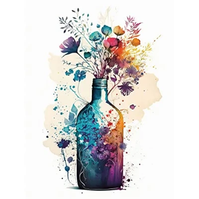 Artery8 Wildflower Spring Bouquet in Glass Wine Bottle Large Wall Art Poster Print Thick Paper 18X24 Inch