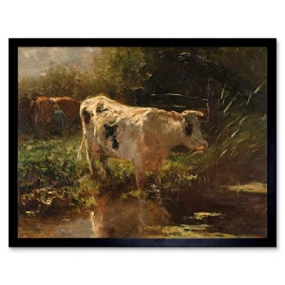Artery8 Willem Maris Cow Beside A Ditch Stream Painting Art Print Framed Poster Wall Decor 12x16 inch