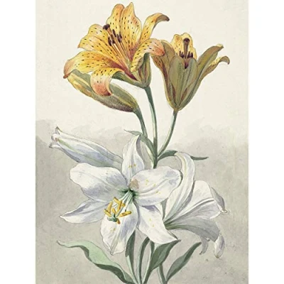 Artery8 Willem Van Leen Yellow And White Lilies Still Life Large Wall Art Poster Print Thick Paper 18X24 Inch