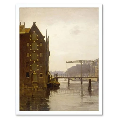 Artery8 Willem Witsen Warehouses Amsterdam Canal Painting Art Print Framed Poster Wall Decor 12x16 inch