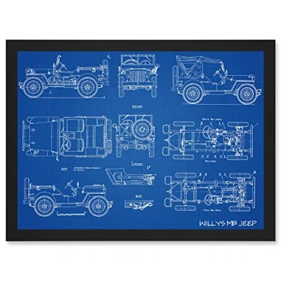 Artery8 Willys MB US Army Military Jeep Vehicle Blueprint Plan Artwork Framed Wall Art Print A4