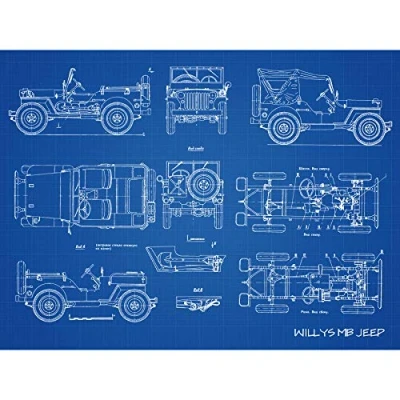 Artery8 Willys MB US Military Jeep Vehicle Blueprint Plan Extra Large XL Wall Art Poster Print