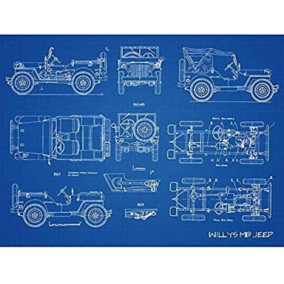 Artery8 Willys MB US Military Jeep Vehicle Blueprint Plan Unframed Wall Art Print Poster Home Decor Premium