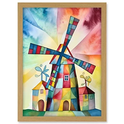Artery8 Windmill Folk Art Abstract Bright Artwork Framed A3 Wall Print