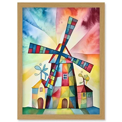 Artery8 Windmill Folk Art Abstract Bright Artwork Framed Wall Print A4