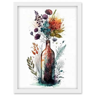 Artery8 Wine Bottle with Wildflower Floral Spring Bouquet Artwork Framed Wall Art Print A4