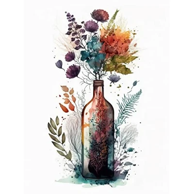 Artery8 Wine Bottle with Wildflower Floral Spring Bouquet Large Wall Art Poster Print Thick Paper 18X24 Inch
