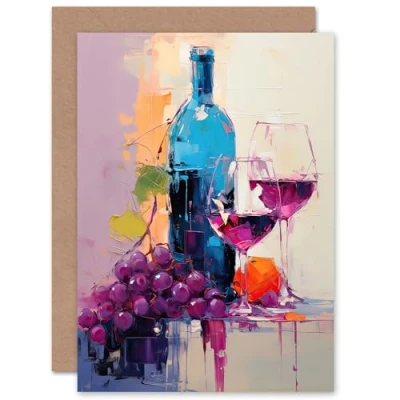 Artery8 Wine Lovers Still Life for Him or Her Man Woman Birthday Thank You Congratulations Blank Art Greeting Card