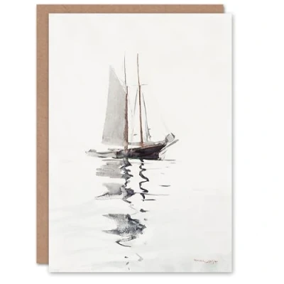 Artery8 Winslow Homer Art Card Two Masted Schooner with Dory Watercolour