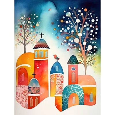 Artery8 Winter Churchyard Snowfall Trees Folk Art Large Wall Poster Print Thick Paper 18X24 Inch