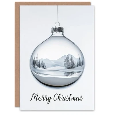 Artery8 Winter Forest Landscape Reflected On Bauble Blank For Him Or Her Art Christmas Card