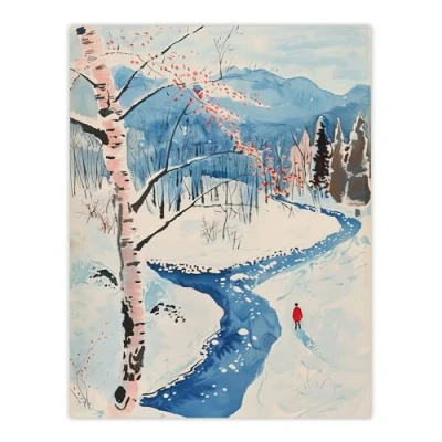 Artery8 Winter Hike By River Forest Snow Landscape Living Room Large Wall Art Poster Print Thick Paper 18X24 Inch