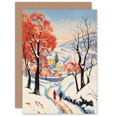 Artery8 Winter Village Snow Sunshine for Him or Her Man Woman Birthday Thank You Get Well Soon Blank Art Greeting Card