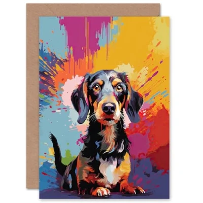 Artery8 Wirehaired Dachshund Dog Lover Gift Pet Portrait Colourful Artwork Painting Sealed Greeting Card Plus Envelope Blank inside