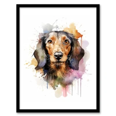 Artery8 Wirehaired Dachshund Lovers Gift Watercolour Pet Portrait Painting Artwork Framed Wall Art Print A4