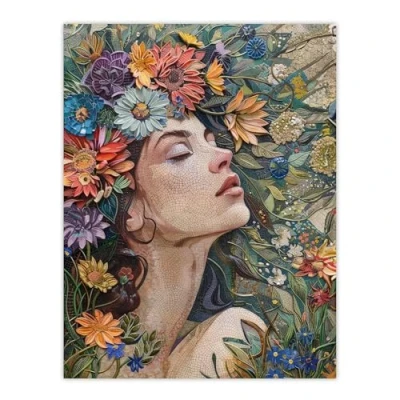 Artery8 Woman Boho Portrait in Spring Flowers Mosaic For Living Room Large Wall Art Poster Print Thick Paper 18X24 Inch
