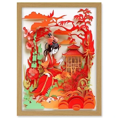 Artery8 Woman by Red Temple Garden Kirigami Collage Artwork Framed A3 Wall Art Print