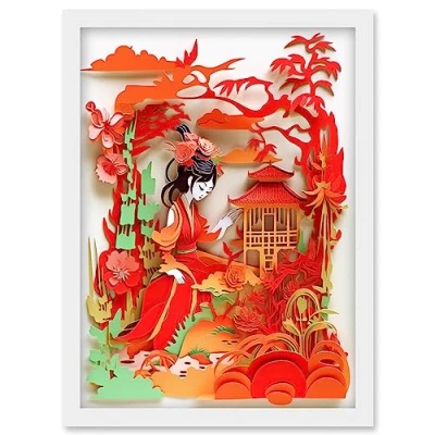Artery8 Woman by Red Temple Garden Kirigami Collage Artwork Framed Wall Art Print A4