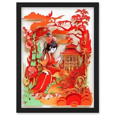 Artery8 Woman by Red Temple Garden Kirigami Collage Artwork Framed Wall Art Print A4
