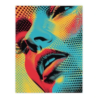 Artery8 Woman Face Close Up Polka Dot Pop Art Portrait For Living Room Large Wall Poster Print Thick Paper 18X24 Inch
