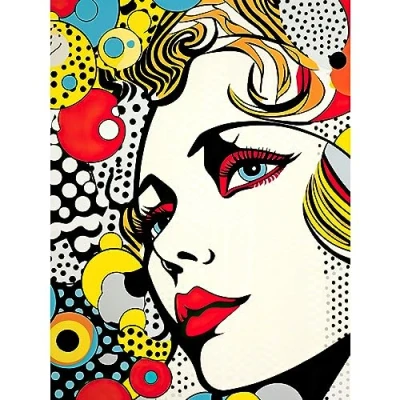 Artery8 Woman Face Geometric Patterns Bubbles Comic Book Style Pop Art Teen Room Halftone Extra Large XL Wall Poster Print