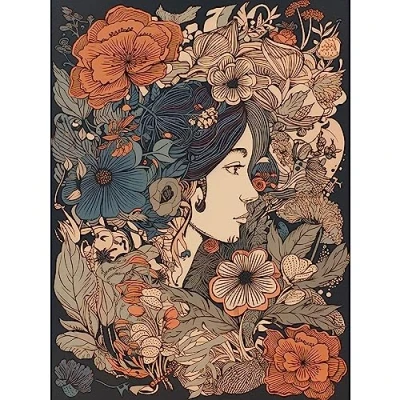 Artery8 Woman Floral Profile Portrait Boho Art Nouveau Large Wall Poster Print Thick Paper 18X24 Inch