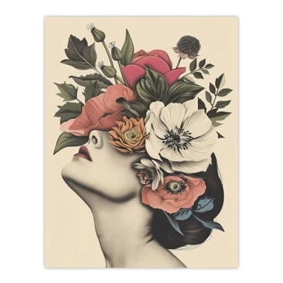 Artery8 Woman Flower Headdress Vintage Style Flowerpunk Living Room Large Wall Art Poster Print Thick Paper 18X24 Inch