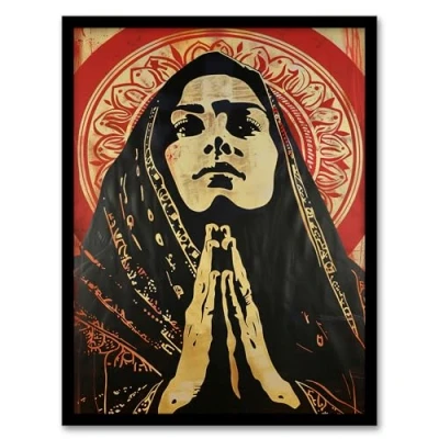 Artery8 Woman in Prayer Artwork Religious Peace Powerful Living Room Framed Wall Art Print A4