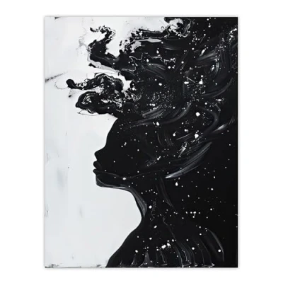 Artery8 Woman in Stars Abstract Portrait Black and White Living Room Extra Large XL Wall Art Poster Print