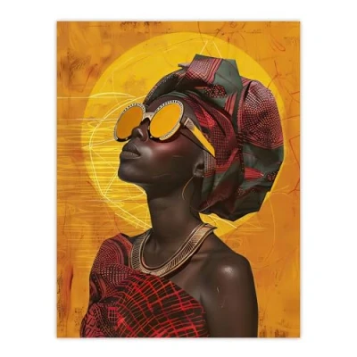 Artery8 Woman in Traditional African Dress Sun Painting Living Room Extra Large XL Wall Art Poster Print