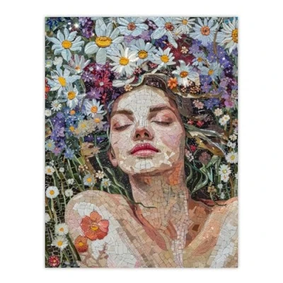 Artery8 Woman Laying in Spring Flower Field Mosaic For Living Room Large Wall Art Poster Print Thick Paper 18X24 Inch