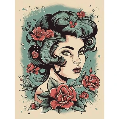 Artery8 Woman Rose Flowers Pin Up Rockabilly Americana 50s Large Wall Art Poster Print Thick Paper 18X24 Inch