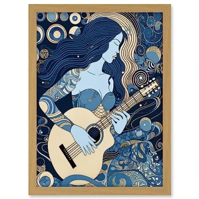 Artery8 Woman with Sleeve Tattoo Playing Guitar Music Artwork Framed A3 Wall Art Print