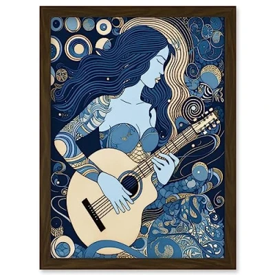 Artery8 Woman with Sleeve Tattoo Playing Guitar Music Artwork Framed Wall Art Print A4